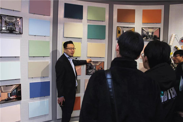 參觀完總部后,在解說員的帶領(lǐng)下,河北環(huán)境工程學(xué)院一行人來到了我公司品牌體驗(yàn)展示中心。對(duì)于我司相關(guān)環(huán)保產(chǎn)品大家都還比較陌生,常凱常總、李勇劍李總分別對(duì)室內(nèi)污染物治理展廳、企業(yè)綠色裝飾材料展廳進(jìn)行了細(xì)致介紹,讓大家對(duì)凈化原理及環(huán)保材料等有了一個(gè)全新的認(rèn)識(shí)!